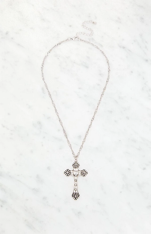 Personal Fears Tribal Cross 20" Silver Chain Necklace