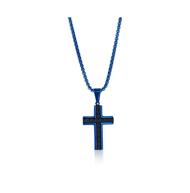 Stainless Steel Black Carbon Fiber Cross Necklace
