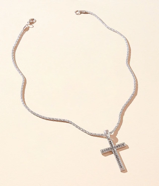 2028 Silver-Tone Black Crystal Cross Chain Necklace