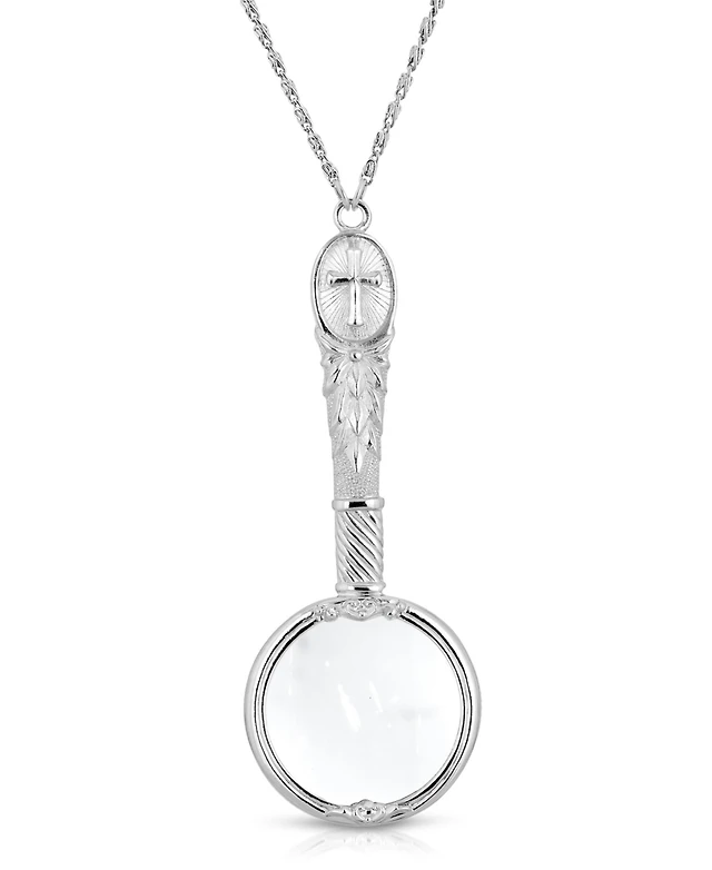 2028 Antiqued Pewter Cross Etched Magnifier 28" Necklace