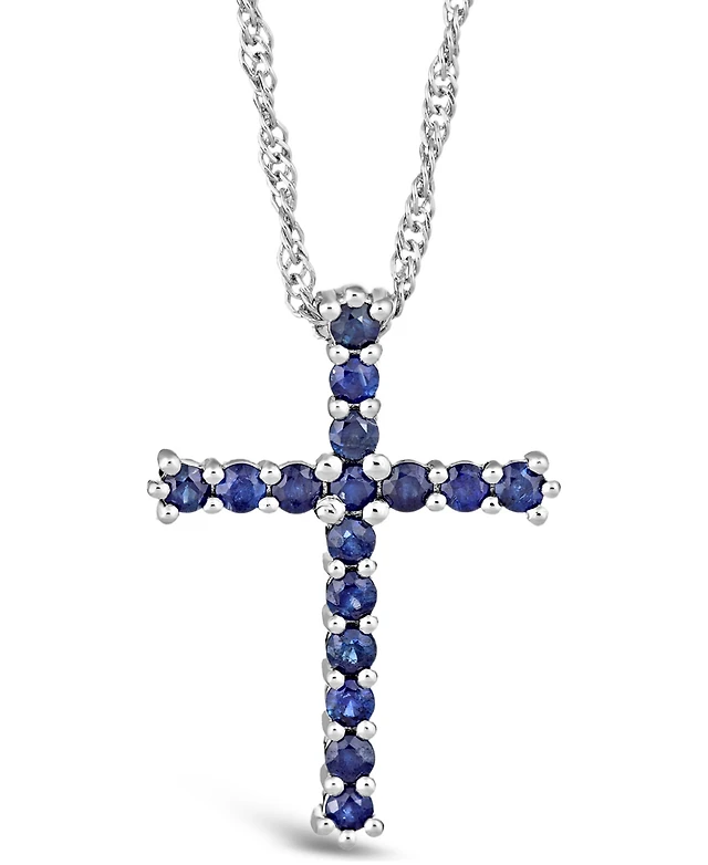 Aquamarine (1/2 ct. t.w.) & Cubic Zirconia 18" Cross Pendant Necklace in Sterling Silver