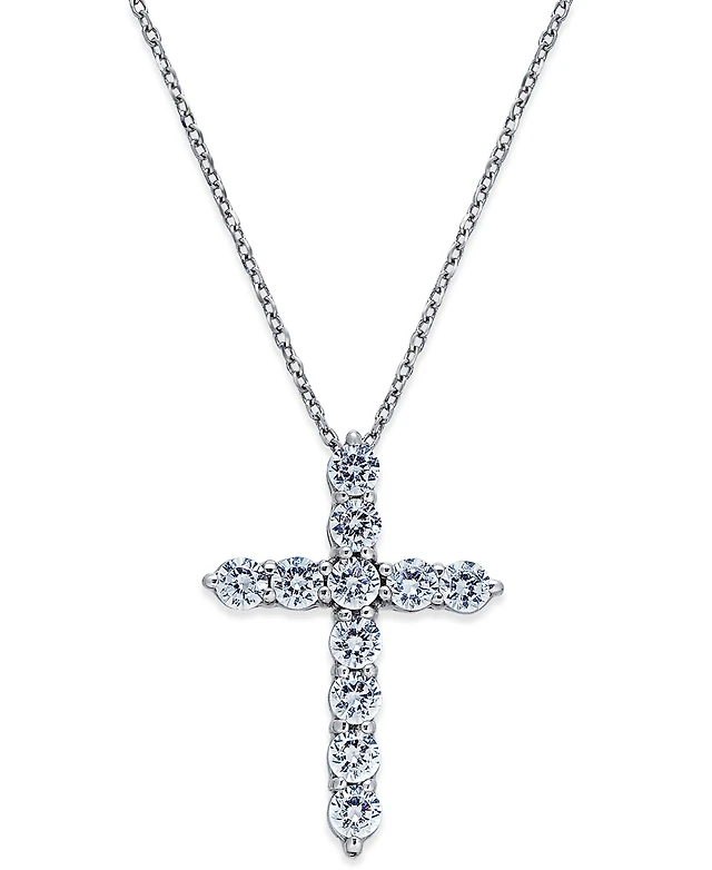 Arabella Sterling Silver White Cubic Zirconia Cross Pendant Necklace (1-1/2 ct. t.w.)