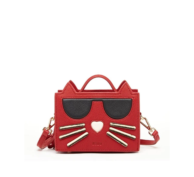 Susu Leather Cat Bag Red Crossbody Purse Women's Handbag with Top Handle and Adjustable Strap