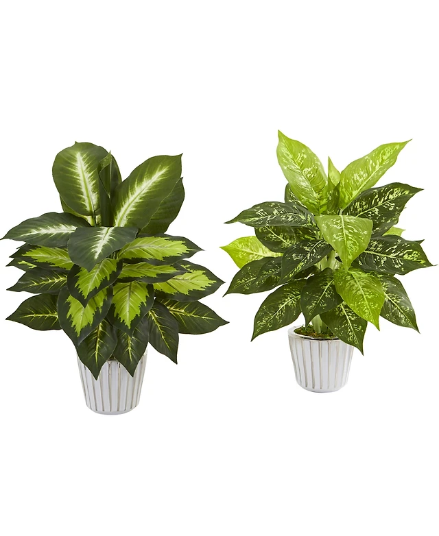 Nearly Natural 19" Dieffenbachia Artificial Plant in White Vase, Set of 2