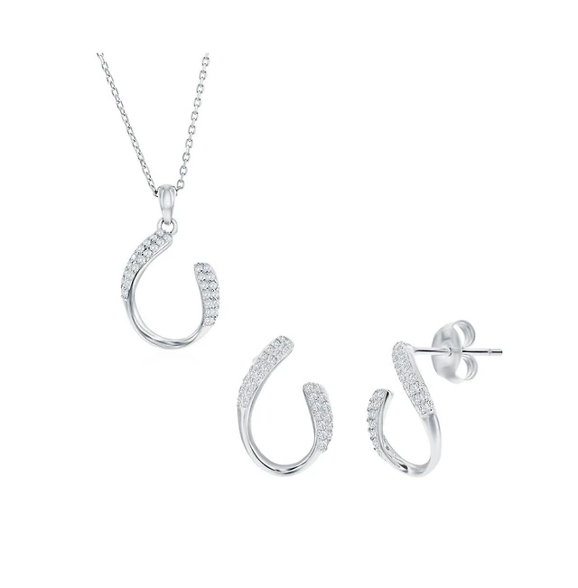 White Lab-Created Sapphire Double Frame Necklace in Sterling Silver