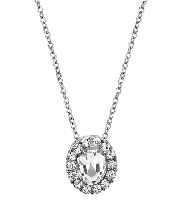 2028 Silver-Tone Crystal Oval Pendant Necklace 16" Adjustable