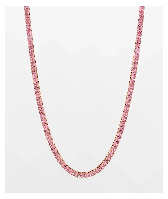 King Ice 5mm Single Row Pink Gold Tennis Chain Necklace
