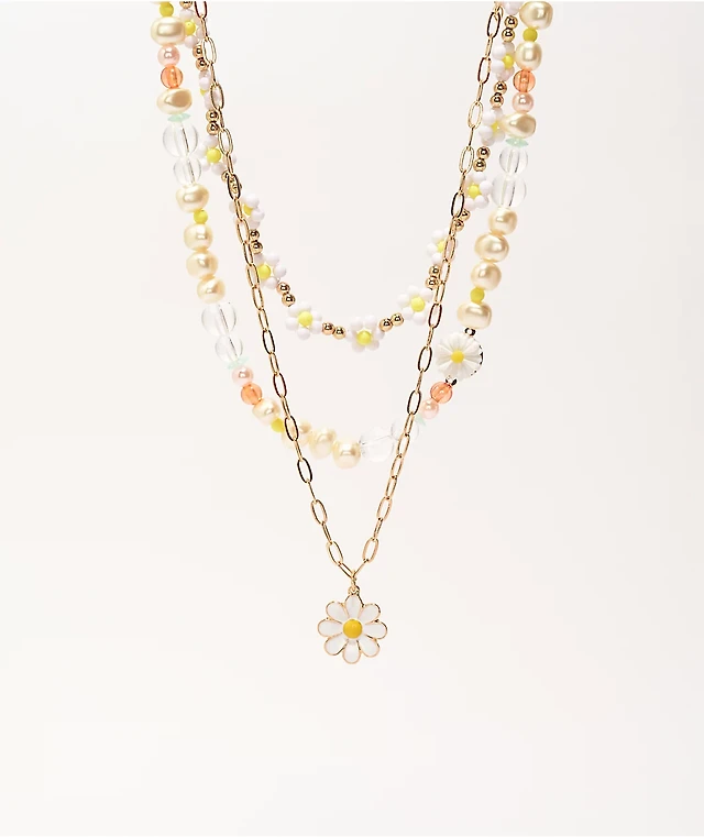 Stone + Locket Beaded Daisy Chain 9" Necklace