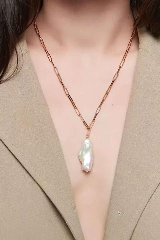 Ettika Baroque Cultured Freshwater Pearl Pendant 18K Gold-Plated Snake Chain Necklace