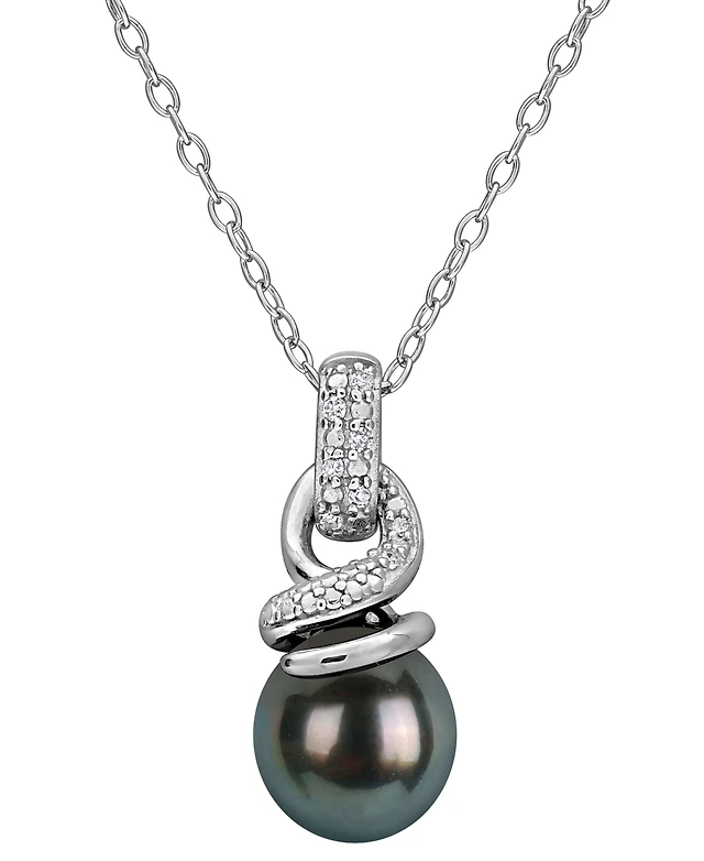 Suzy Levian New York Suzy Levian Sterling Silver Pearl and Cubic Zirconia Station Necklace