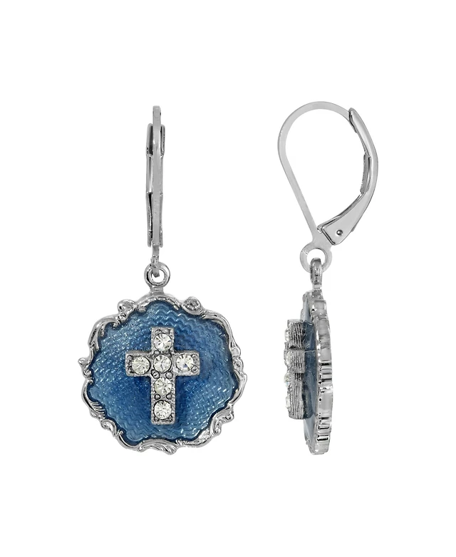 2028 Silver-Tone Enamel with Crystal Accents Horsehoe Drop Earrings