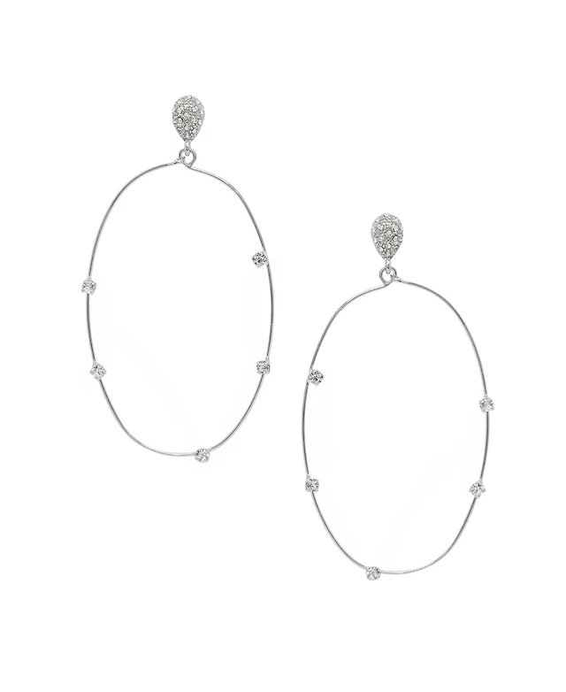 Vince Camuto Gold Tone Pave Crystal Hoop Drop Earrings