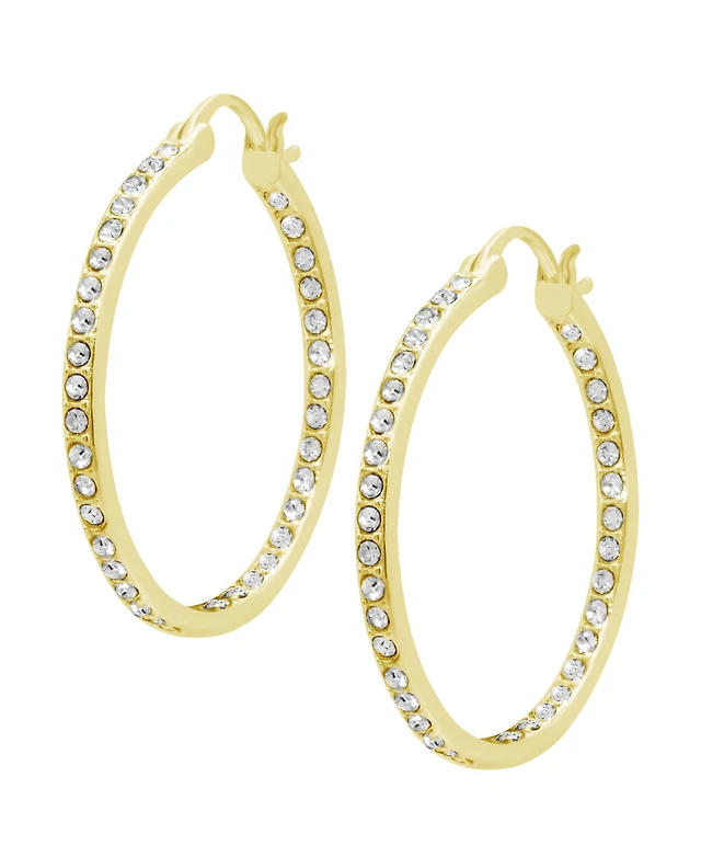 And Now This High Polished Clear Crystal Inside Outside Hoop Earring, Gold Plate and Silver Plate