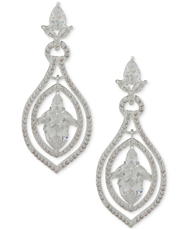 Anne Klein Silver-Tone Cubic Zirconia Drop Earrings