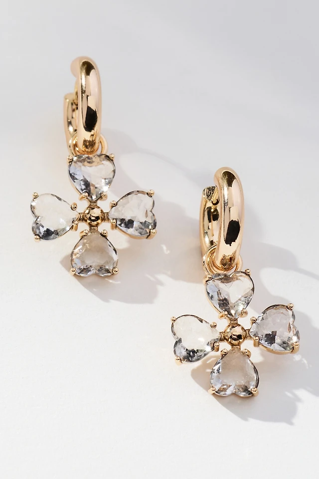 Essentials Clear Crystal Frontal Stationed Hoop, Gold Plate and Silver