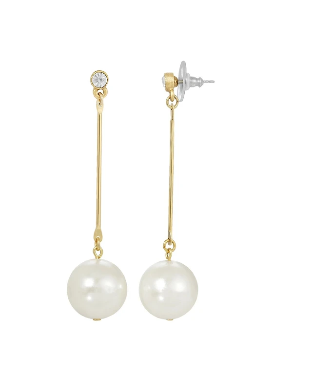2028 Gold-Tone Imitation Pearl with Channels Drop Earring