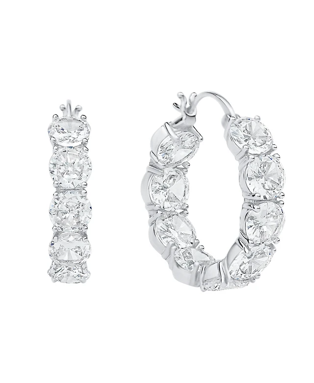 Swarovski Matrix Rhodium Plated Round Cut Hoop Earrings