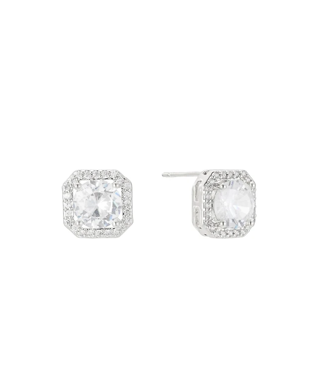 Ettika Silver Plated Infinity Crystal Stud Earrings