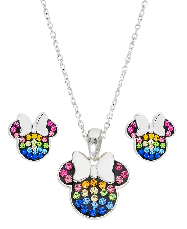 Disney Crystal Minnie Mouse Necklace and Matching Stud Earrings