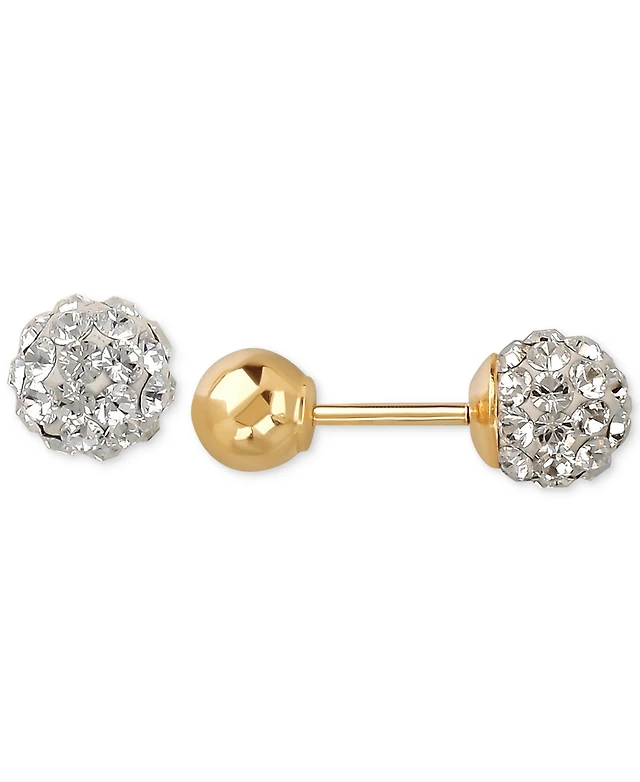 And Now This High Polished Ball Stud and Post Paper Clip Clear Crystal Drop Earring Set, Gold Plate