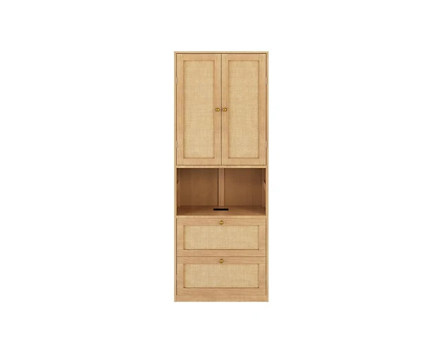 Rattan Shoe Cabinet with 2 Flip Drawers and 1 Pull-Out Drawer, 3-Position Adjustable Shelf, Narrow Shoe Cabinet for Entryway/Porch, Oak