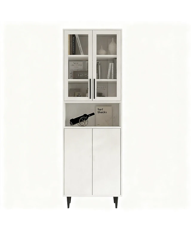 Yigii 71" Glass Door Bookshelf 5-Tier Display Cabinet Narrow Storage