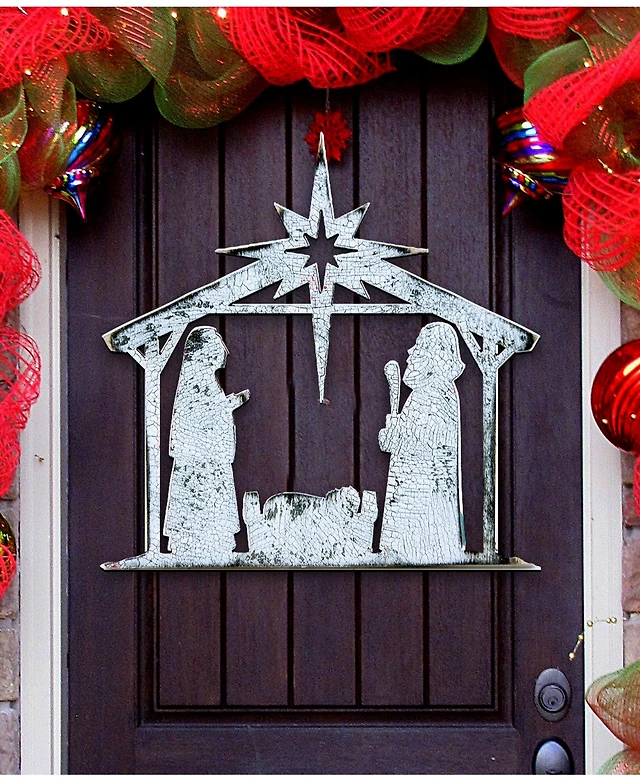 Glitzhome Lighted Wooden Nativity Block Sign, 12"
