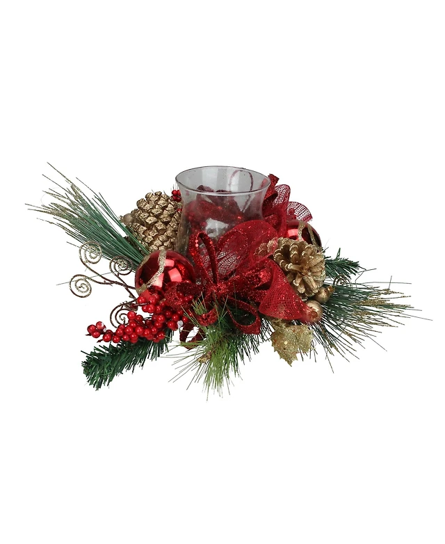 Northlight Pine Sprigs and Glittered Berries Christmas Hurricane Candle Holder, 18"
