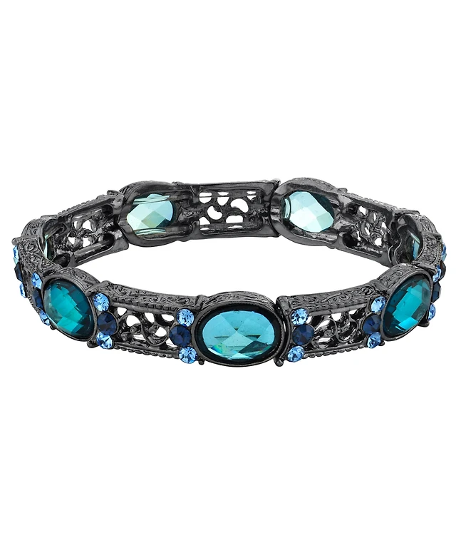 2028 Silver-Tone Blue Flower Stretch Bracelet