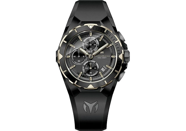 Guess Men's Gold-Tone Black Silicone Multi-Function Watch, 46mm