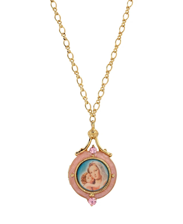 2028 14K Gold Dipped Round Glass Topaz Pendant Two-Tone Chain Necklace