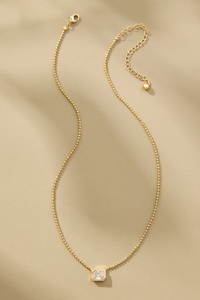 And Now This Crystal and Round Bead Chain Anklet in Gold Plate