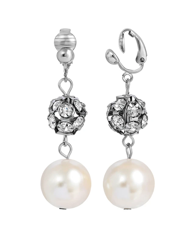 Anne Klein Gold-Tone Pave & Imitation Pearl Halo E-z Comfort Clip-On Button Earrings