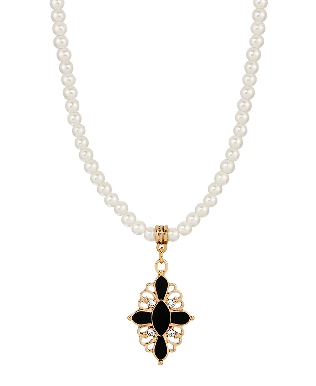 Anne Klein Imitation Pearl and Crystal Stone Gold-Tone 2-Row Pave Hoop Earrings