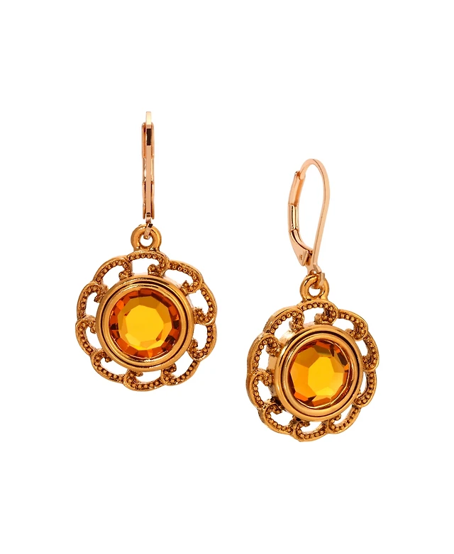 2028 Crystal Round Filigree Drop Earrings