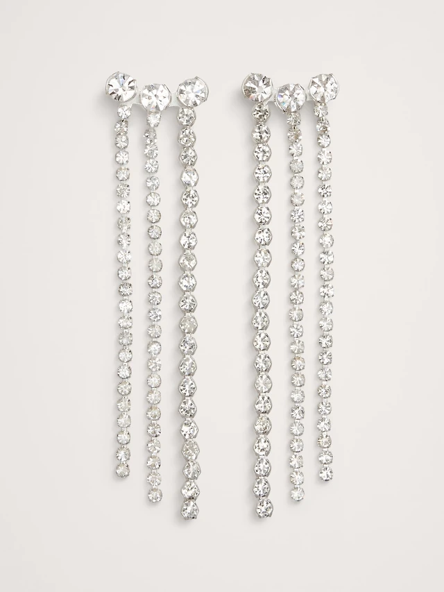 2028 Silver-Tone White Graduated Imitation Pearl and Crystal Drop Earrings