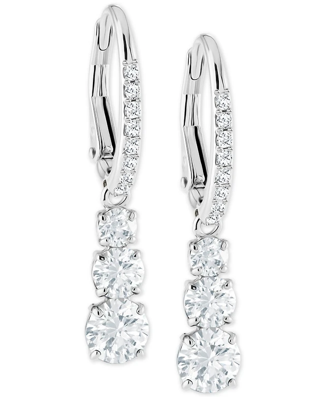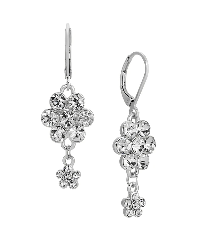 AVA Nadri Cubic Zirconia and Crystal Heart Pendant and Drop Earrings Set in White Rhodium Brass - 16"