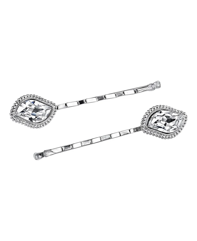 2028 Silver Tone Large Crystal Cross Pendant Necklace 28"
