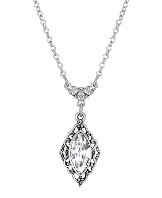 2028 Silver-Tone Crystal Octagon Pendant Necklace 16" Adjustable