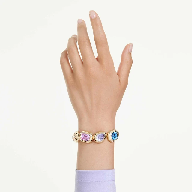 Matrix bangle watch, Swiss Made, Crystal bracelet, White, Stainless Steel