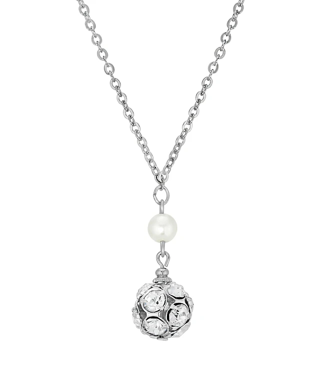 Honora 7.0-8.0mm Freshwater Cultured Pearl and Champagne Crystal Ball Necklace in Sterling Silver