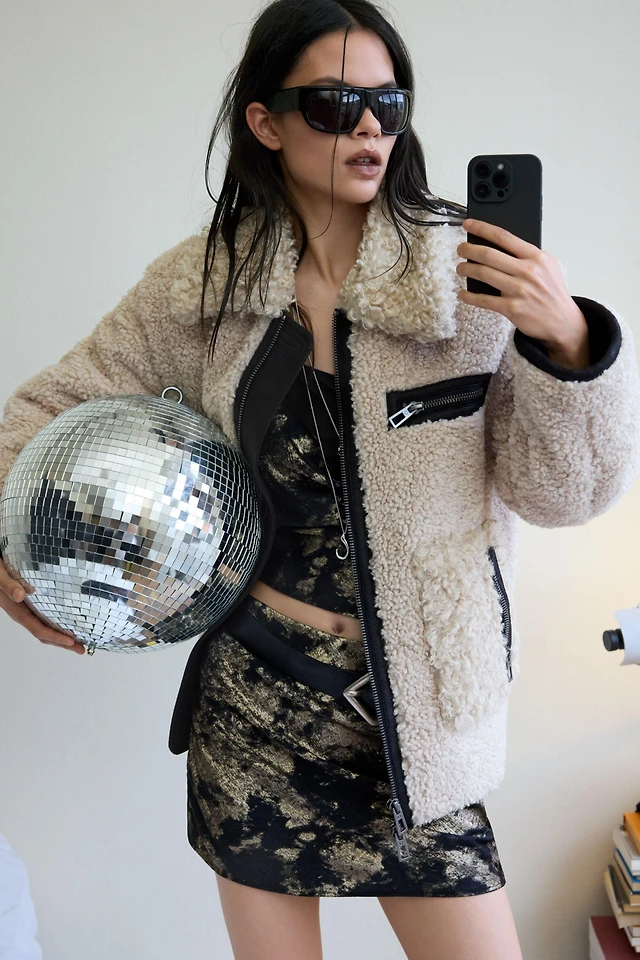 Ninth Hall Ayla Faux Fur Trim Black Hooded Bomber Jacket