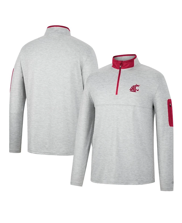 Men's Colosseum Heathered Gray, Crimson Washington State Cougars Country Club Windshirt Quarter-Zip Jacket