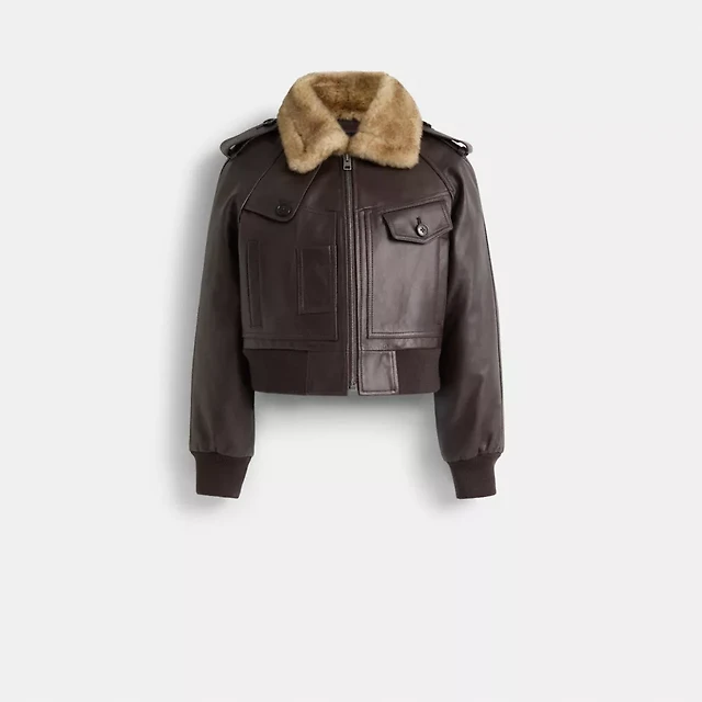 100% LEATHER FLARED HEM JACKET