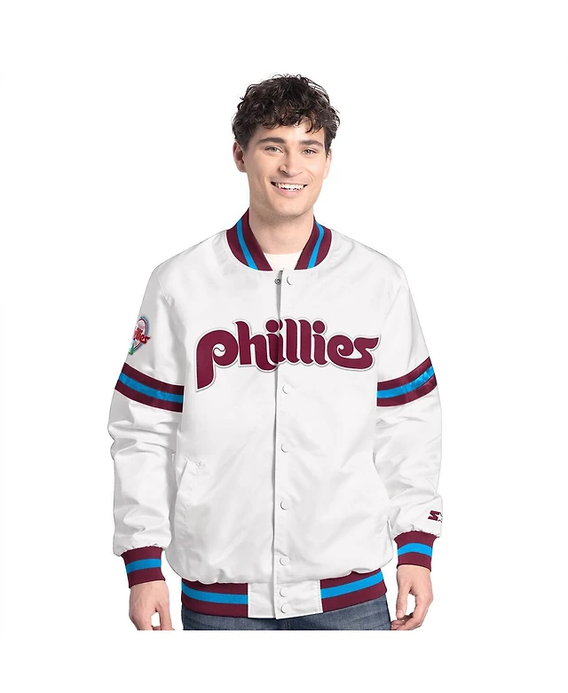 Starter Men's Silver Philadelphia Eagles Triple Option Full-Snap Varsity with Logo Jacket