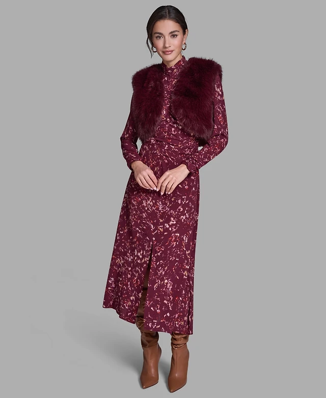 Members Only Women's Faux Rabbit Fur Reversible Bomber Looney Tunes Satin Mashup Print Lining Jacket