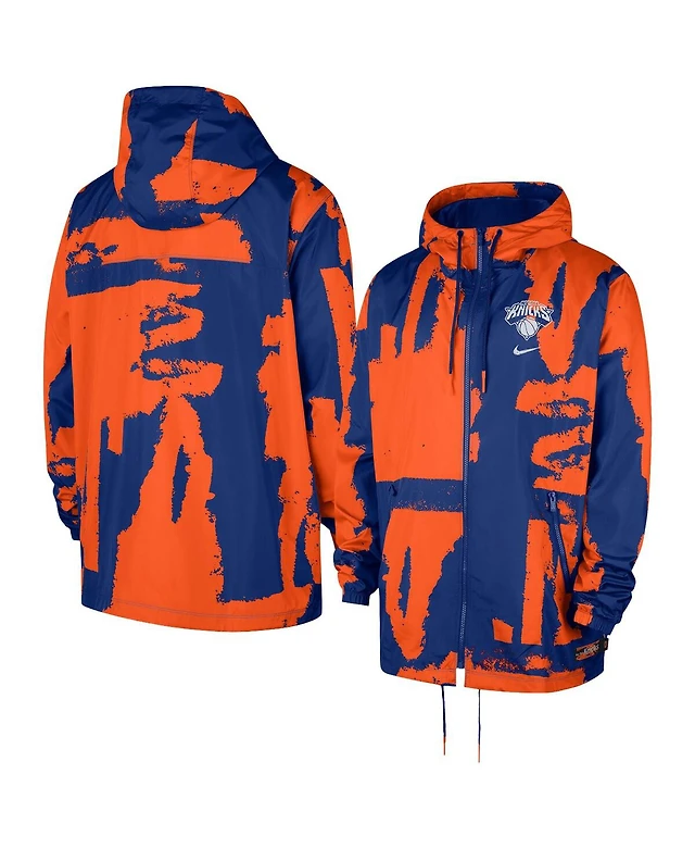Nike Men's Blue/Orange New York Knicks Courtside Club Premium Woven Full-Zip Hooded Jacket