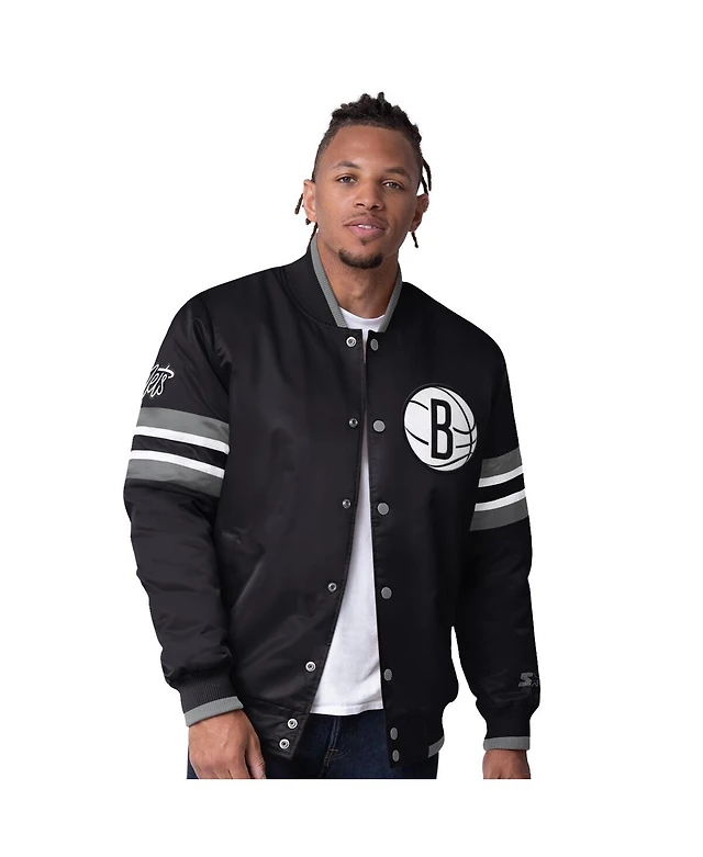 Starter Men's Black Brooklyn Nets Scout Varsity Satin Full-Snap Jacket