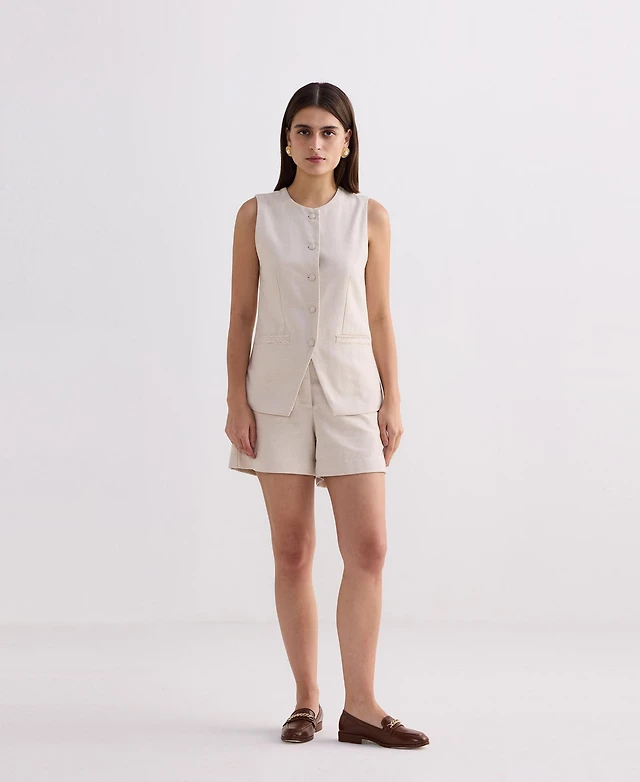 Reistor Women's Cotton Tweed Vest Jacket Set Cream