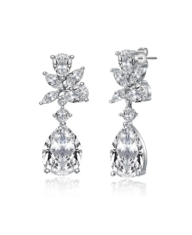 Sterling Silver with White Gold Plating Colored Pear Cubic Zirconia Drop Earrings
